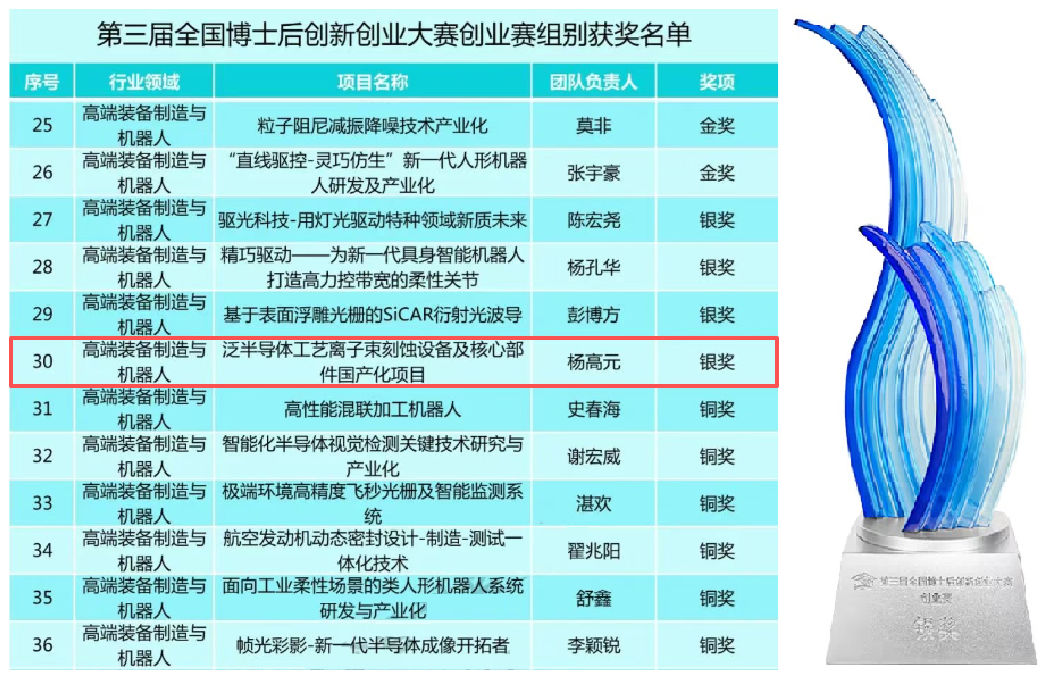 赛事规模空前,竞技最高舞台。本次大赛共吸引海内外3.6万名参赛者携8006个优质项目同台竞技,历经严苛的层层选拔,仅1700余个项目成功晋级总决赛,上演了一场高手云集的“神仙打架”,竞争异常激烈。中科光栅凭借“泛半导体工艺离子束刻蚀设备及核心部件国产化”项目强势突围,在高端装备制造与机器人赛道以第六名的成绩摘得全国赛创业组银奖,彰显公司在高端装备制造领域的科技创新硬实力。
